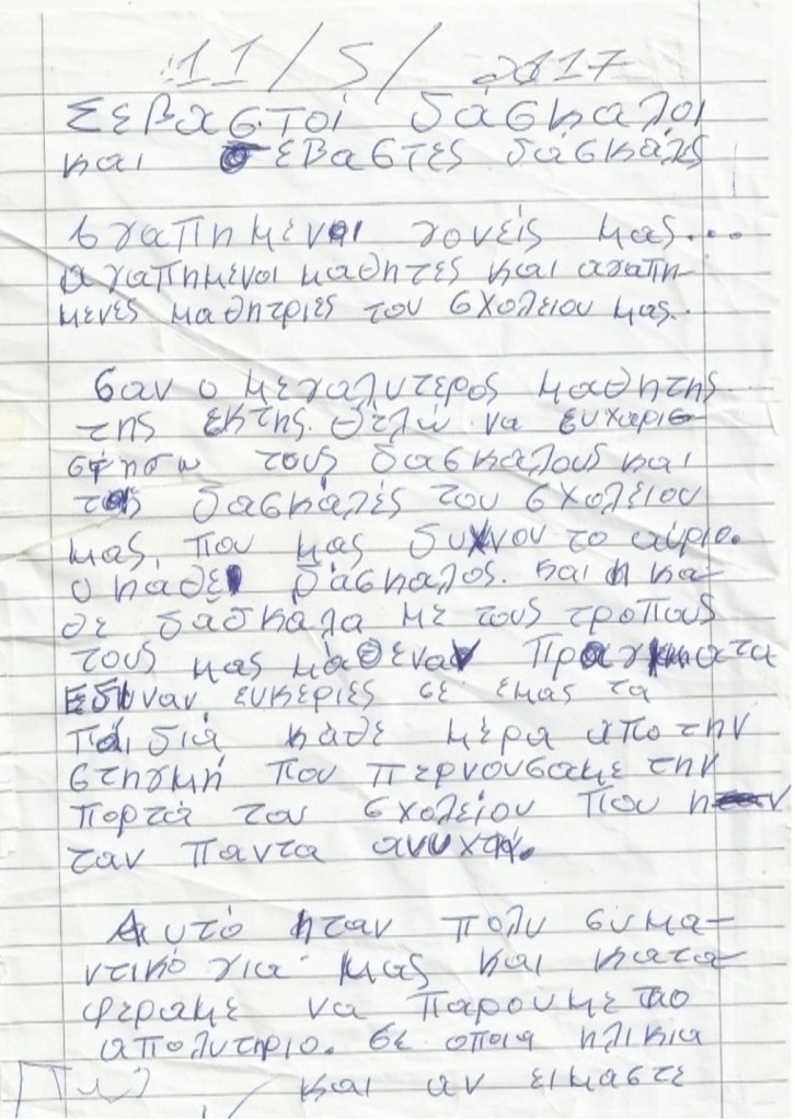 [38] Για την βοήθεια οφείλω να εκφράσω ευχαριστίες στις Διευθύνσεις των Σχολείων.